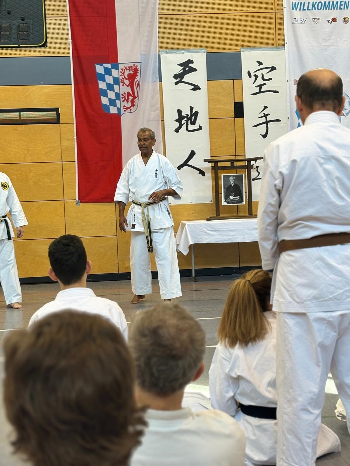 Die erste Einheit am Vormittag wurde von Jamal Measara Sensei 9.DAN Karate u. 9.DAN Kobudo geleitet. Jamal Measara Sensei ist einer der bekanntesten Budoka weltweit und genießt sehr hohes Ansehen auf Okinawa dem Ursprung des Karate- und Kobudo. Jamal Measara geboren in Malaysia lehrte auf der ganzen Welt sein Karate und Kobudo und wurde 1980 in Deutschland (Kelheim Ndb) sesshaft.